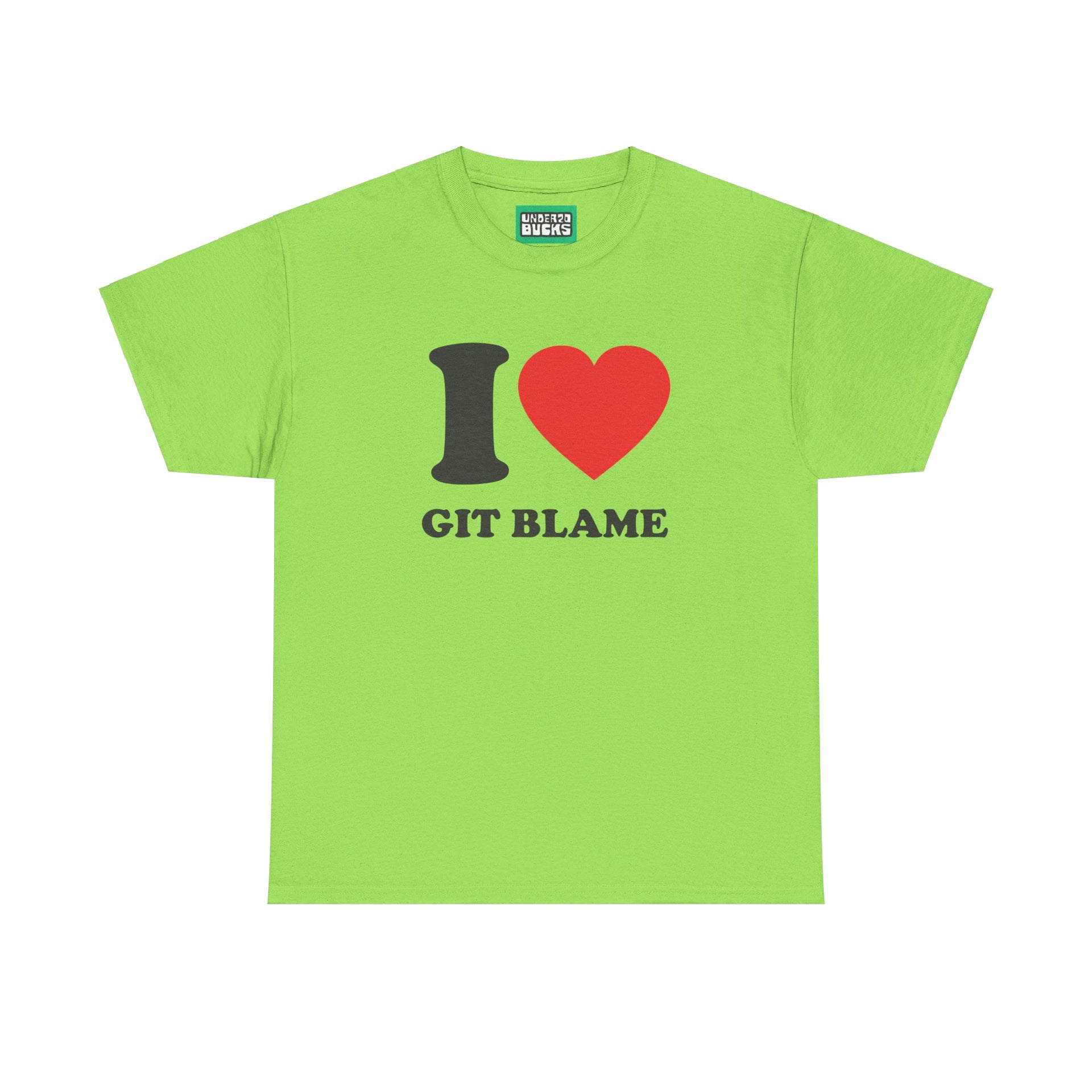For those special developers who know that finding out who broke the code is half the fun! This 'I ❤️ GIT BLAME' tee is a love letter to every programmer's favorite detective tool.