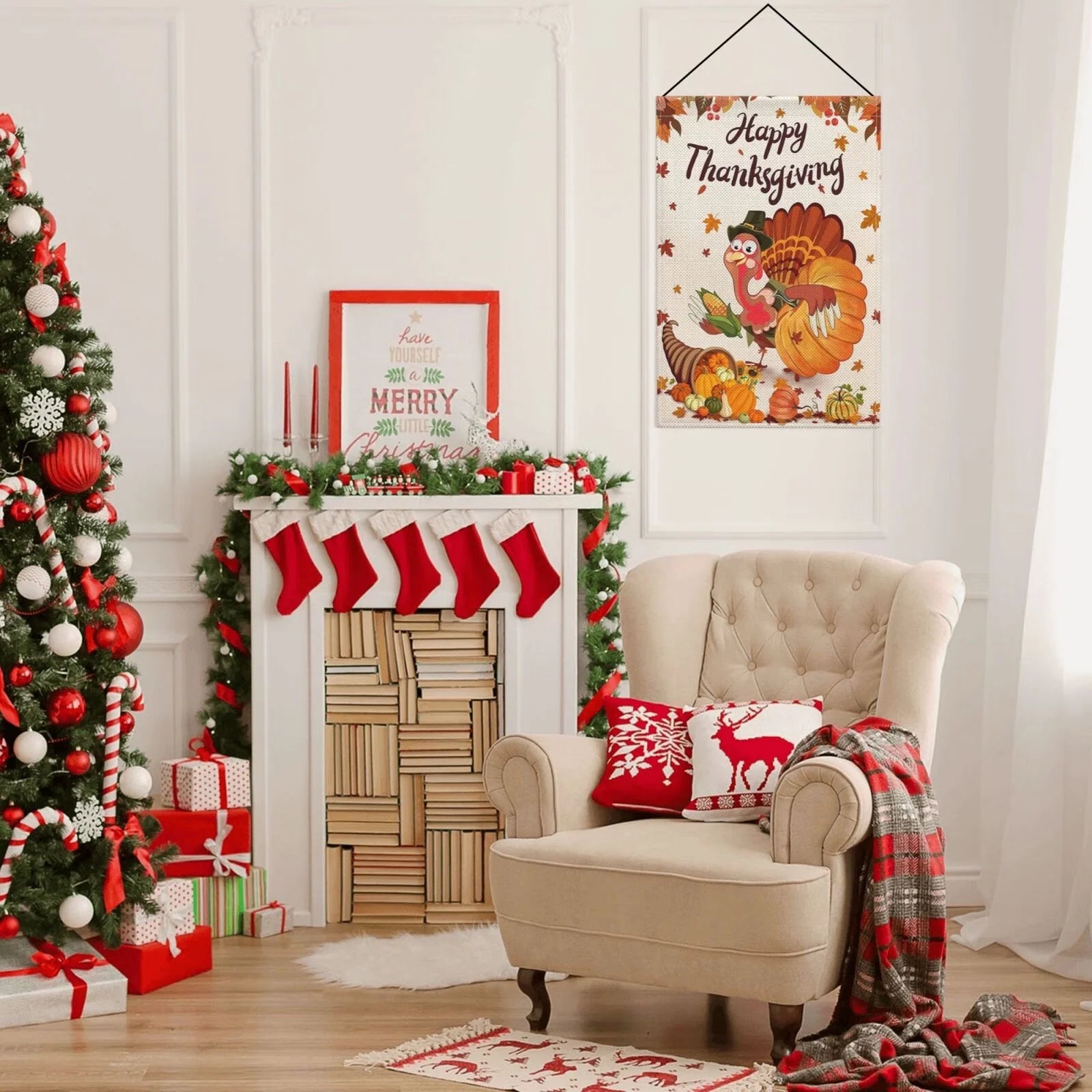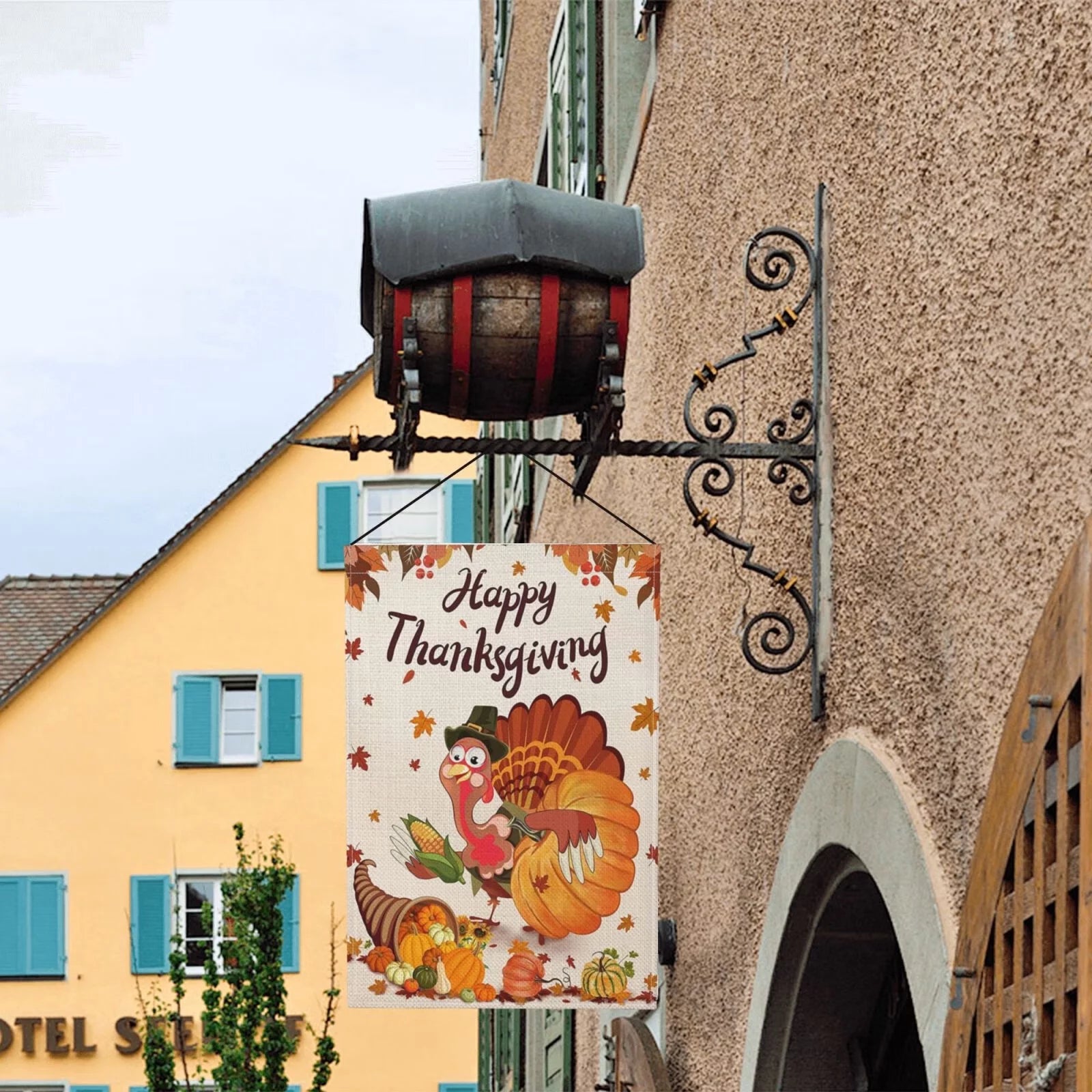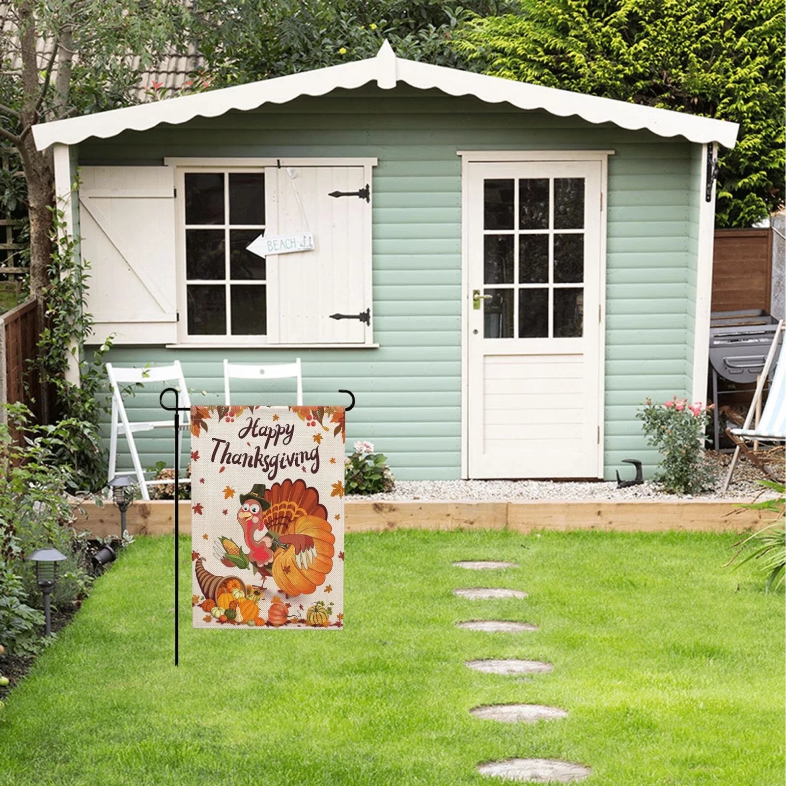 Happy Thanksgiving Garden Flag, Burlap Thanksgiving Garden Flag, Thanksgiving Turkey Flag, Thanksgiving Garden Flags 12X18 Inch